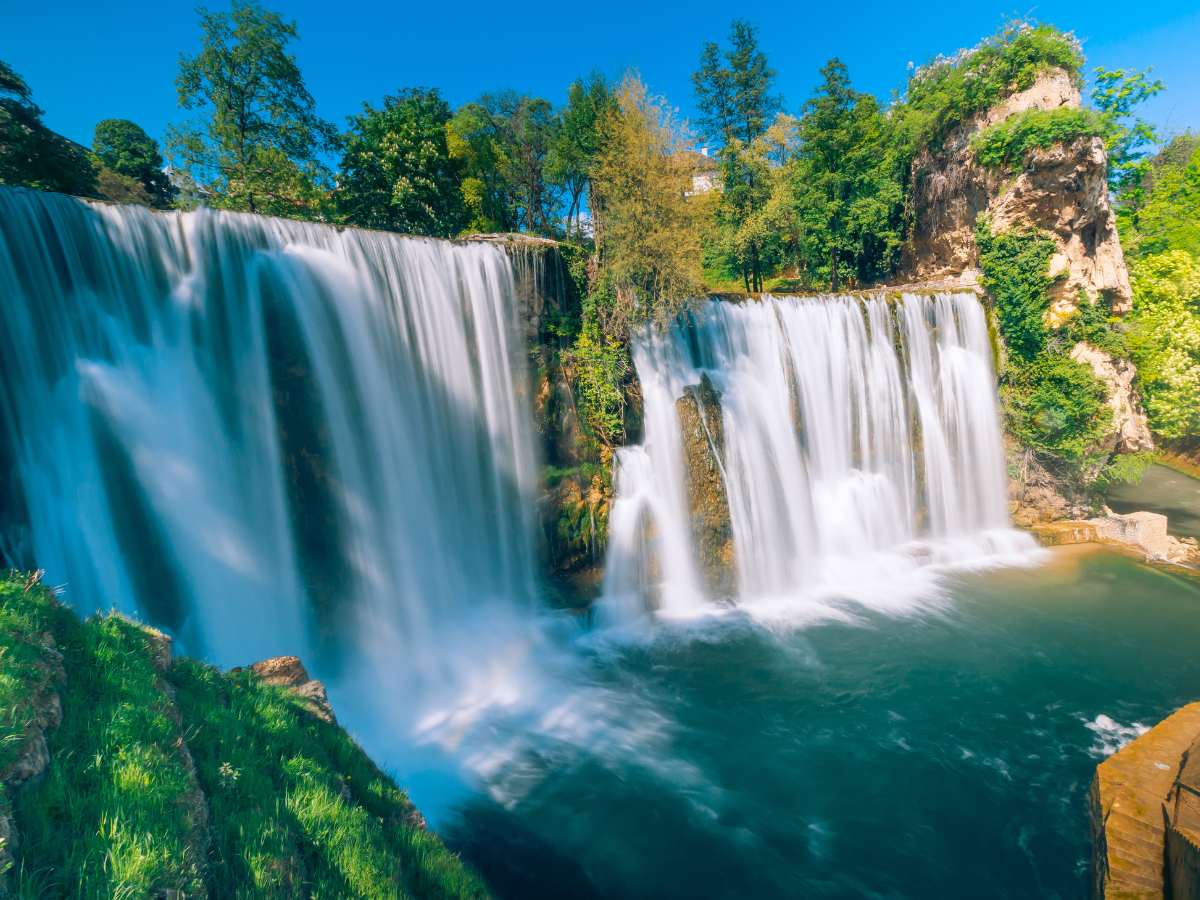 水量が多く迫力のあるヤイツェの滝を見学します。