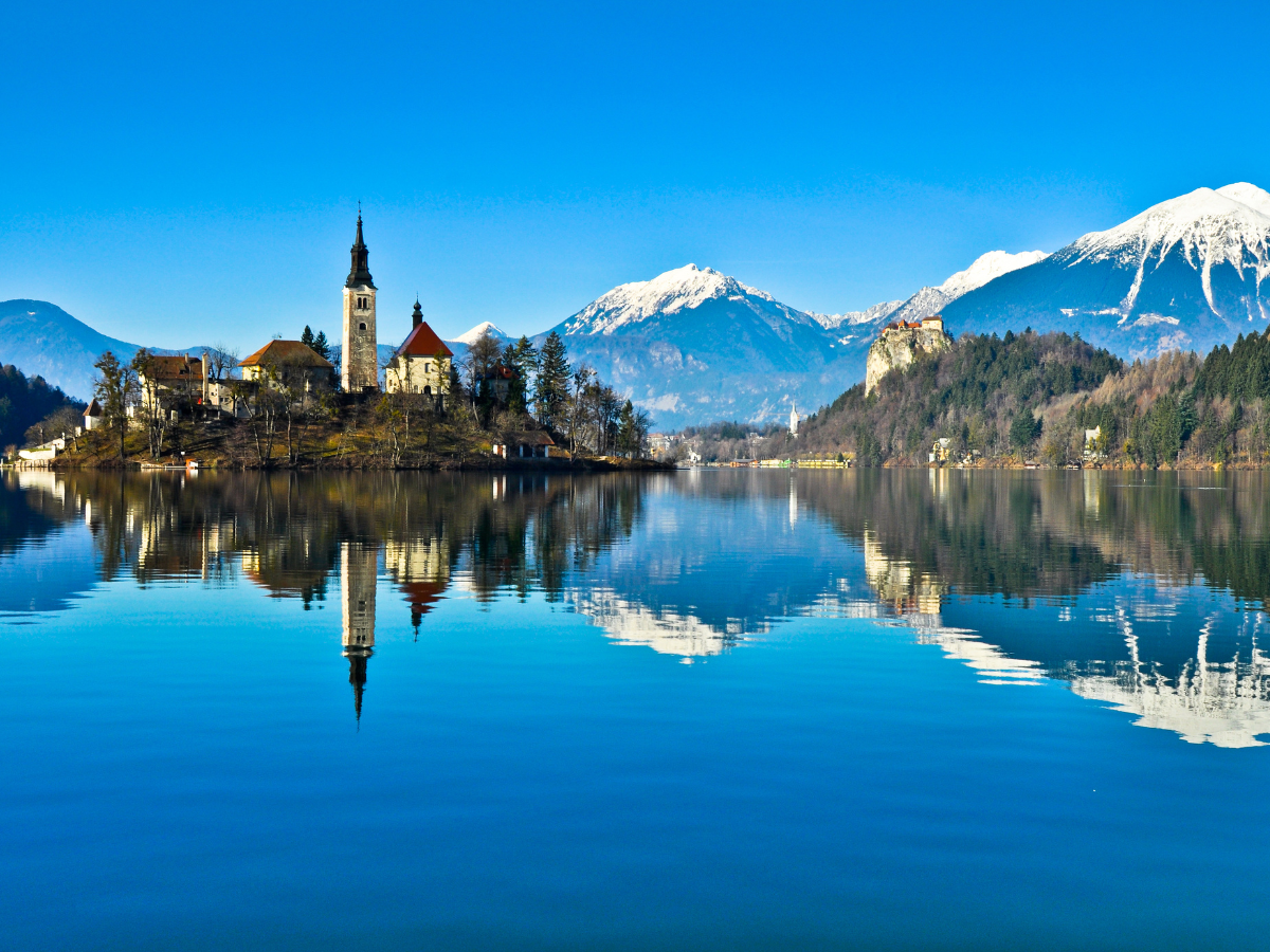 ブレッド湖観光と自由行動(合計約3時間/昼食は各自)湖の小島へボートで渡り、聖マリア教会(外観)を訪れます。観光後ブレッドの街にて自由行動のお時間をお取りします。